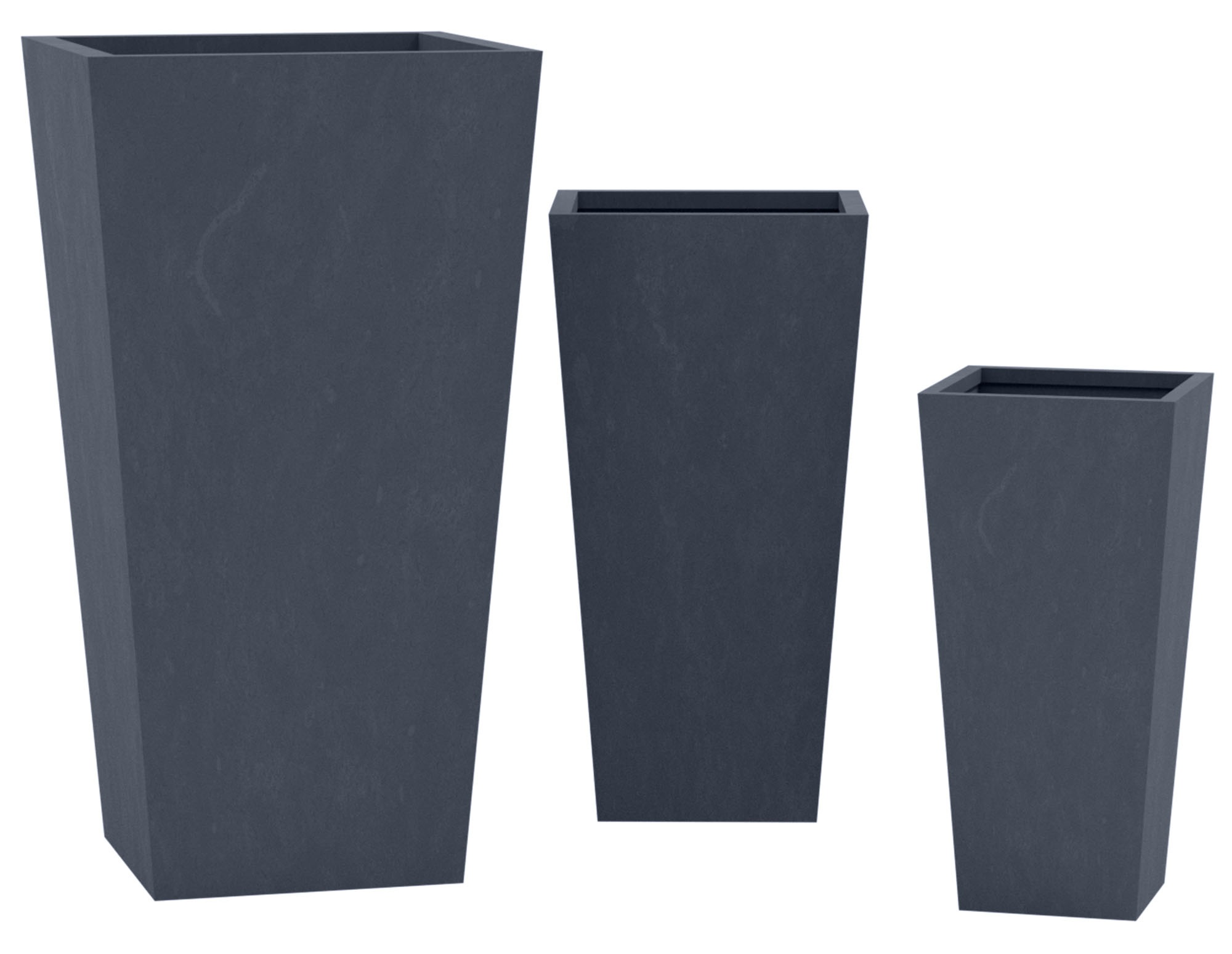 Sada tří květináčů z fiberclay nabízí elegantní řešení pro vnitřní i venkovní prostory. Odolné vůči povětrnostním vlivům a prodyšné, podporují zdravý růst rostlin a zabezpečují optimální odtok vody.