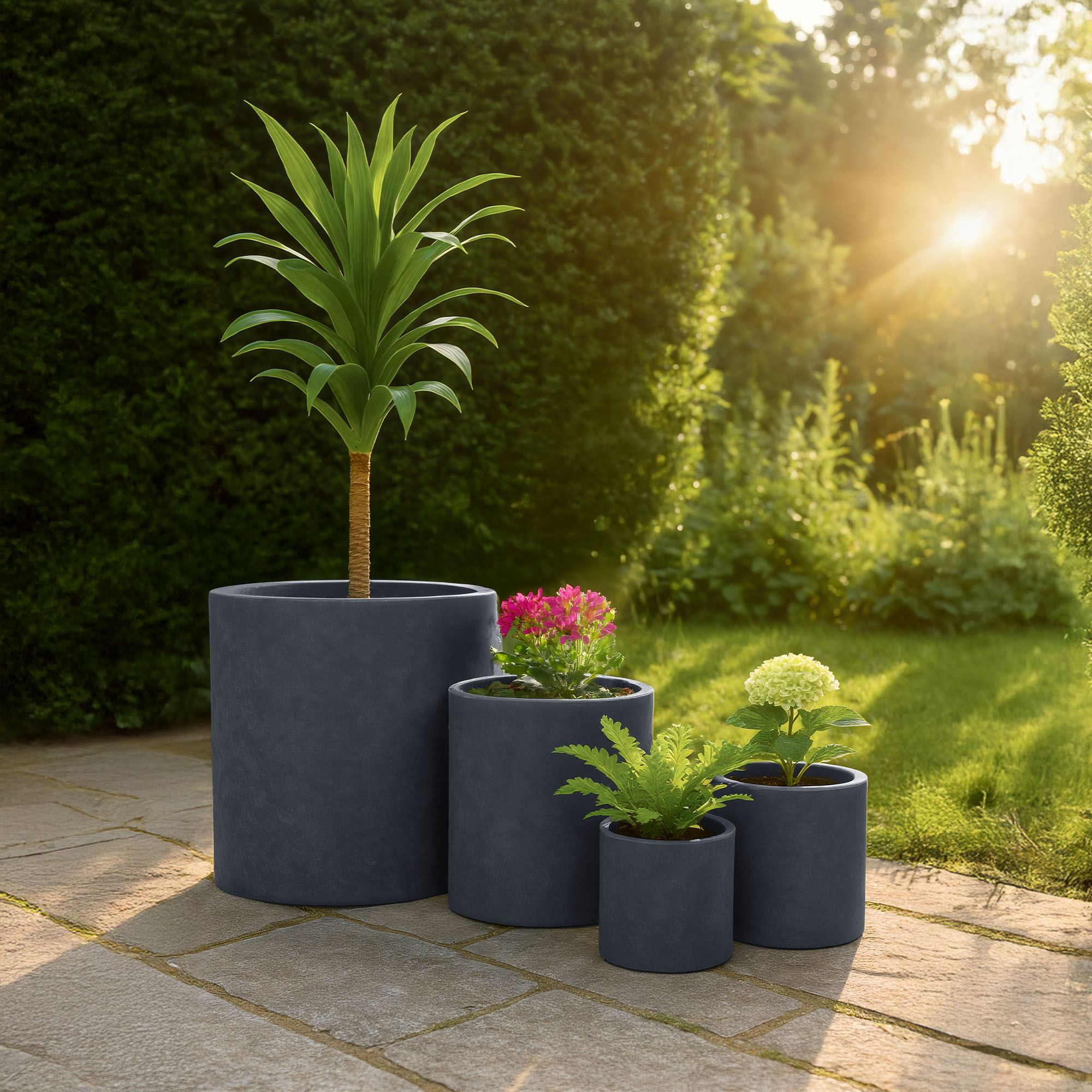 Sada čtyř květináčů z fiberclay nabízí stylové řešení pro vnitřní i venkovní prostory. Odolné vůči povětrnostním vlivům a prodyšné, podporují zdravý růst rostlin a zabezpečují optimální odtok vody.